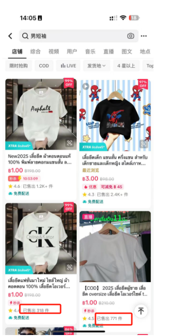 例如成人短袖,我们可以搜索相关标题