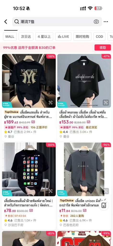 这里,我们的手机作为选品手机,无需翻译泰文进行搜索,Tiktok是全球短视频社交平台,会自动识别用户的需求。