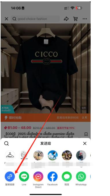 点进去商品链接,我们点击左上角的分享按钮,复制链接。