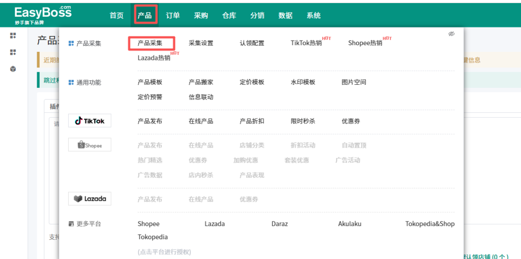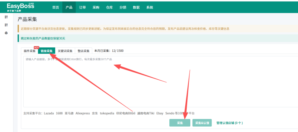 然后用市场上大众的ERP进行采集,例如EASYBOSS,bigseller.