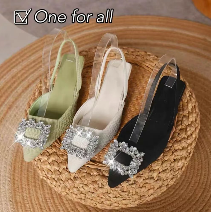 One for all พร้อมส่งจากไทย TX378 รองเท้าส้นสูง สูง2นิ้ว ปลายแหลม ประดับพลอยเทียม ทรงมุลเลอร์แฟชั่นสำหรับสตรี