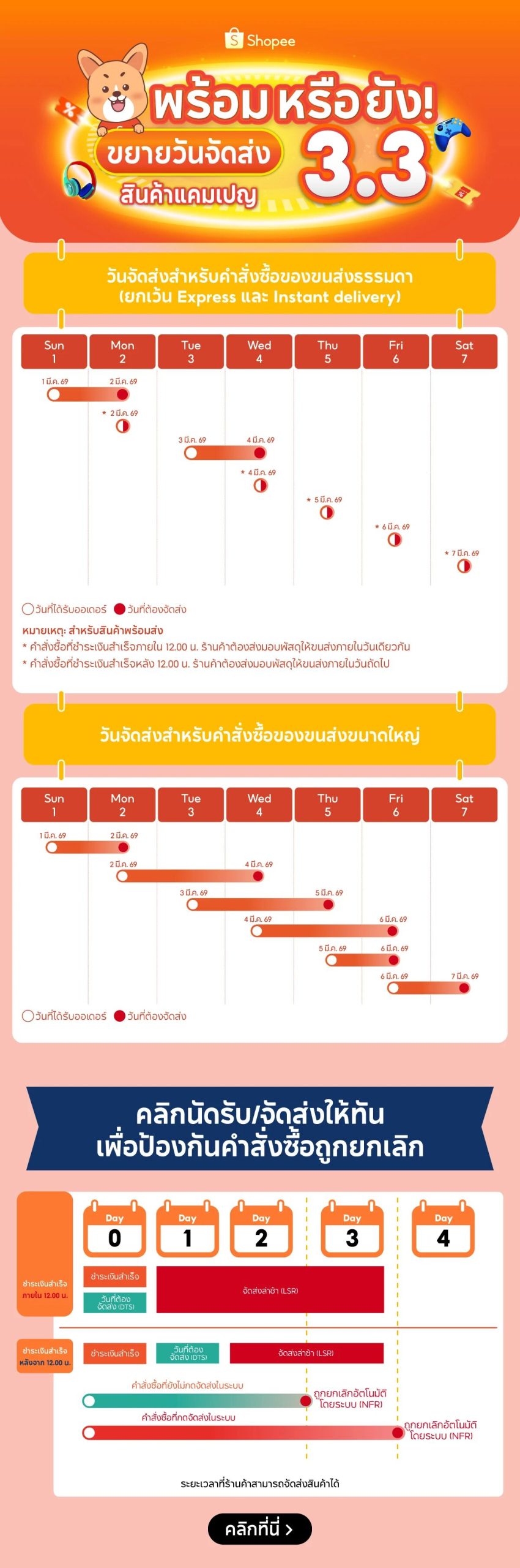 飞禾跨境2月28日消息,Shopee泰国本土店发布最新通知,为迎接即将到来的3.3大促活动,平台将对普通运输订单的配送日期进行调整,具体如下: